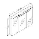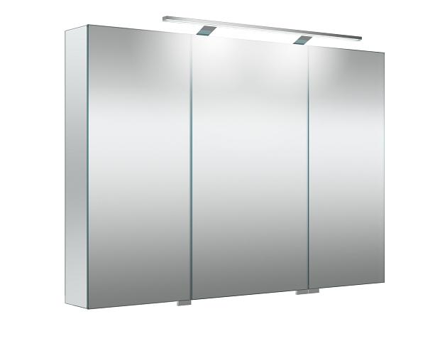 GARDA er et klassisk, stilrent og meget plasseffektivt overskap med tre dobbeltsidige speildører og toppmontert LED-belysningsskinne.