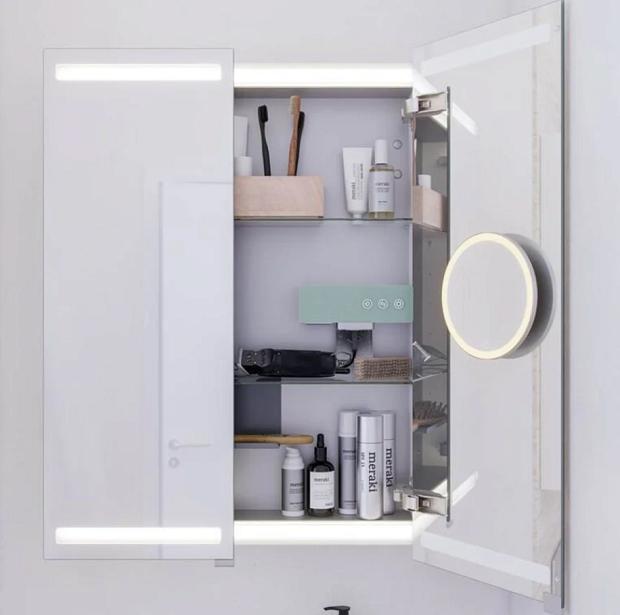 Speilskapet Level gir deg rikelig med ekstra oppbevaringsplass på badet. Inne i speilskapet finner du flere hyller, et forstørrelsesspeil, en magnetskinne, en metallhylle og en stikkontakt, noe som gir deg god plass til tannbørste, barbermaskin, kremer, deodorant og mye mer. Speilskapet har topp- og bunnlys som kan reguleres i både styrke og varme, slik at du kan få riktig lys etter dine behov. OBS: Det tilkommer en oppstartstillegg (BI1) for produkter med valgfri farge. Det betales én gang per valgfri farge, uansettav antall produkter.
