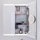 Speilskap (120x80x14,5 cm) i hvit farge som gir deg rikelig med oppbevaringsplass på badet. Inni skapet finner du flere hyller, et forstørrelsesspeil, en magnetskinne, en metallhylle og en praktisk stikkontakt – perfekt for tannbørste, barbermaskin og skjønnhetsprodukter. Justerbart topp- og bunnlys lar deg regulere både lysstyrke og varme etter behov.