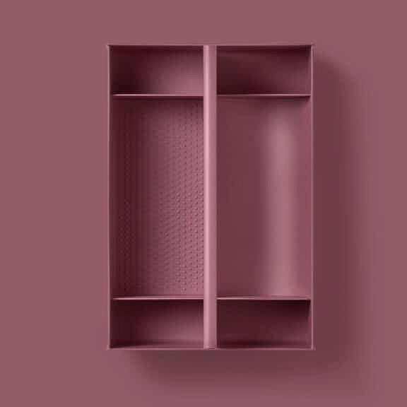 Haven Toolbox A3.21 skuffinnredning til Haven-baderomsmøbler. Produsert i 100% resirkulerbar bambus. Med håndtak på toppen, så kan meget enkelt løftes rett ut av skuffen og settes oppå benken/servanten. Fås i Coral, Dark Burgundy og Nordic Green.