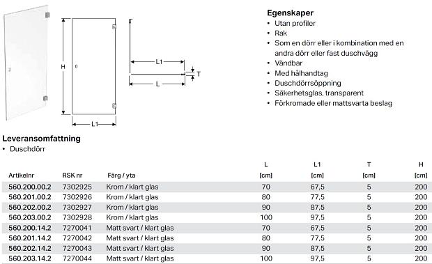- Finnes i breddene 70, 80, 90 og 100 cm.
