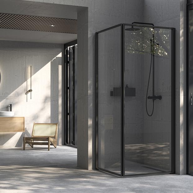 EDGE 12 DUSJHJØRNE 90X90 SORT MATT/ GLASS KLART