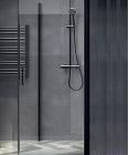 Skap et stilrent og funksjonelt baderom med Imber dusjdører i eksklusiv matt sort finish. Dørene er utstyrt med hev- og senk-hengsler som gjør dem ideelle for mindre baderom – de kan svinges helt inn mot veggen og frigjør dermed verdifull plass når dusjen ikke er i bruk.  Imber-serien tilbyr fleksible løsninger: velg mellom bredder på 70, 80 eller 100 cm, og kombiner dørene fritt for å designe din egen dusjløsning. Du kan velge å kjøpe dørene som separate enheter, eller som komplette sett for dusjhjørner.