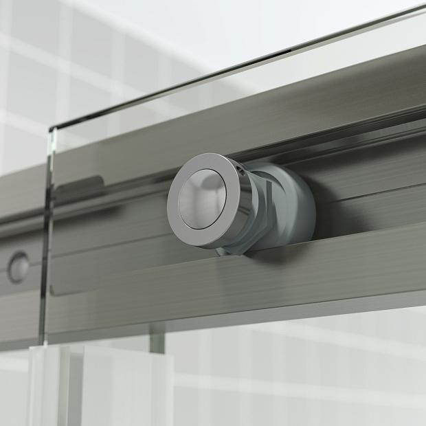 Stabiliseringsarm - blank rustfritt stål med endeknapper i forkrommet ABS. Til skyvedører med 2 fastvegger følger 2 stabiliseringsarmer med som standard.