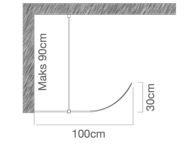 • Monteres 90 cm fra hjørne