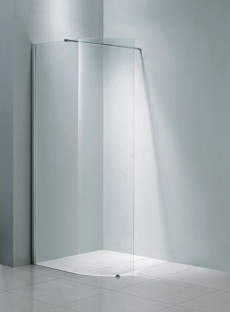 En elegant skjermvegg for dusjhjørne, med 8 mm rett eller buet klart glass. Tidsriktig og svært rengjøringsvennlig.