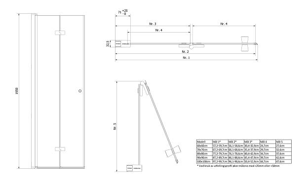 - 180° sving på leddet i glass (åpnes kun utover) se strektegninger