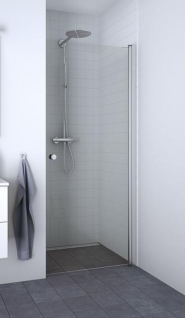 - Innfellbar dusjdør med 180° svingradius