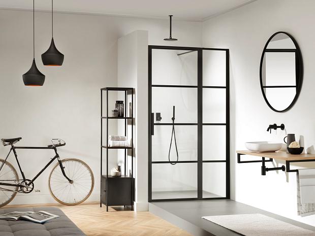 SOHO dusjdør med sidefelt høyre 120 cm, med skjulte hengsler og smale håndtak på begge sider uttrykker et moderne og trendy utseende. Sammen med 210 cm høye vegger og 8 mm tykt sikkerhetsglass setter SOHO et unikt og distinkt preg på ditt bad.