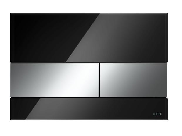 TECEsquare betjeningsplate for to spylevolum. Betjeningsplate for TECE sisterner, for toppeller frontmontasje. Lavtbyggende(11 mm) betjeningsplate i glass. Inklusive feste-materiell.