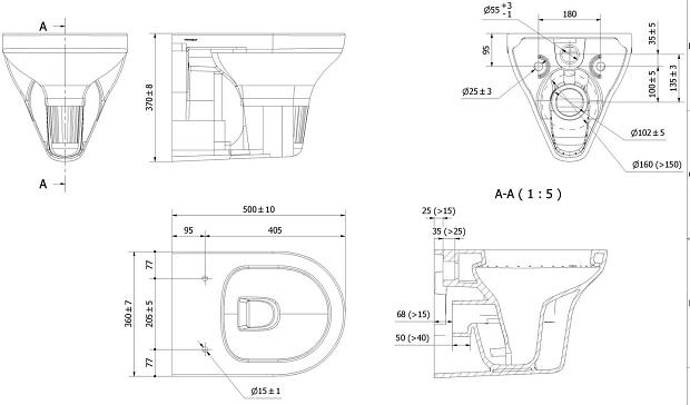 • Stødige kryssbjelker med fire gjenger, for sikring av toalettskålen