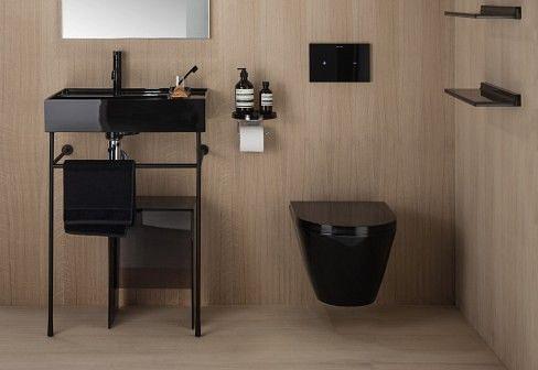 Vegghengt toalett i sort sanitærkeramikk med rimless og skjult feste. Stilrent og moderne toalett.
