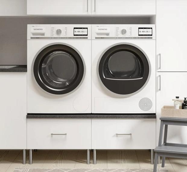 Med en skuff under løfter du vaskemaskinen og tørketrommelen opp til god arbeidshøyde.