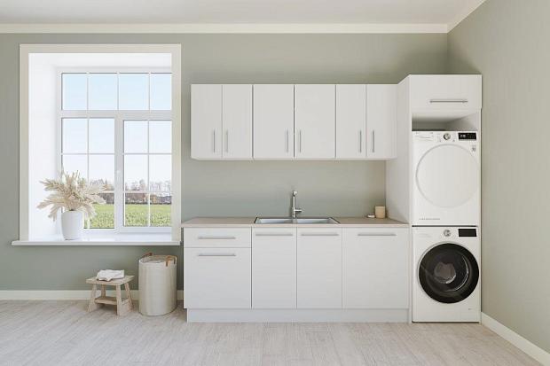 Innred vaskerommet med praktiske og smarte løsninger fra Alterna vaskerom. Vi har ulike løsninger for alle romstørrelser. Sett sammen selv, eller kjøp en komplett møbelpakke.