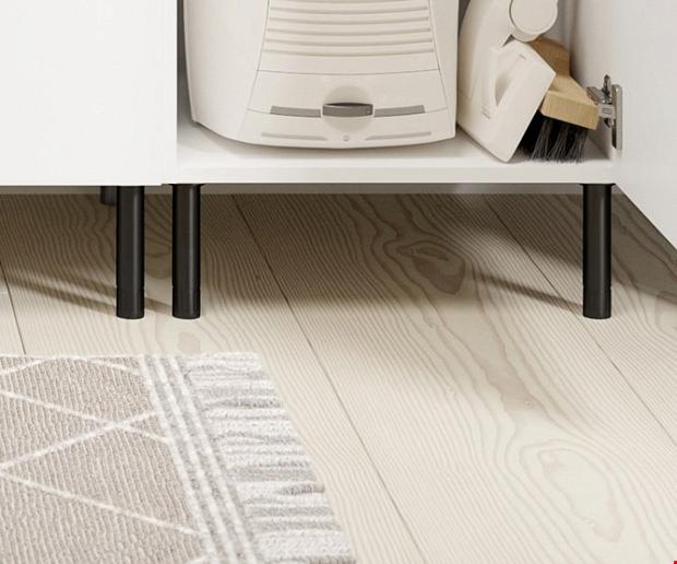 Bruk to støtteben pr. skapmodul. Under vaskemaskin og tørketrommel må det benyttes fire støtteben grunnet stor vektbelastning.