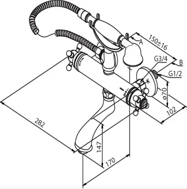 Nostalgisk termostatstyrt kran for badekar. Med Eco-klik for ekstra vannsparing og skoldesperre.
