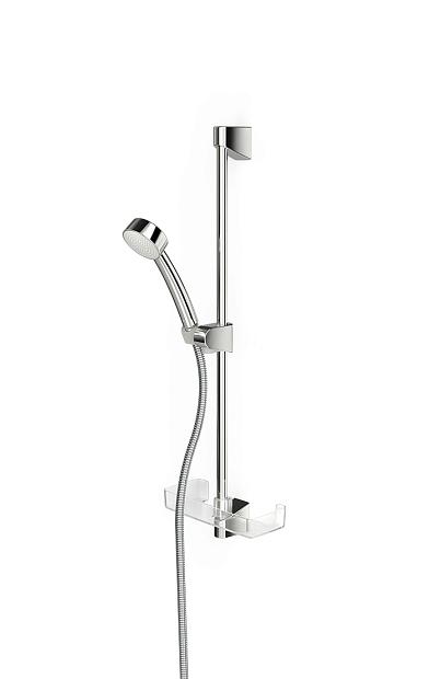 Bestående av dusjslange, veggstang, veggholder, stødig såpekopp som er enkel å holde ren,
