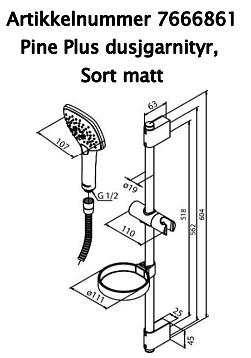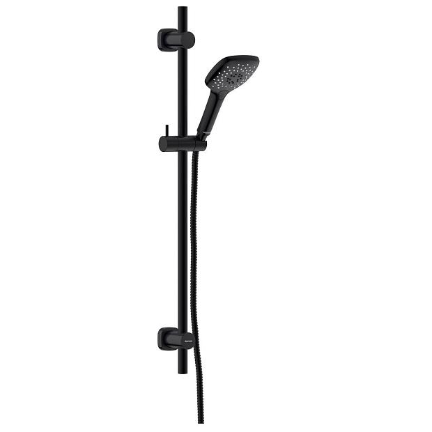 Dusjgarnityr med fleksibelt veggfeste, maks avstand 740mm. Tre innstillinger på stråle. Sparedyse i hånddusj som enkelt kan fjernes. Sort matt slitesterk overflate.