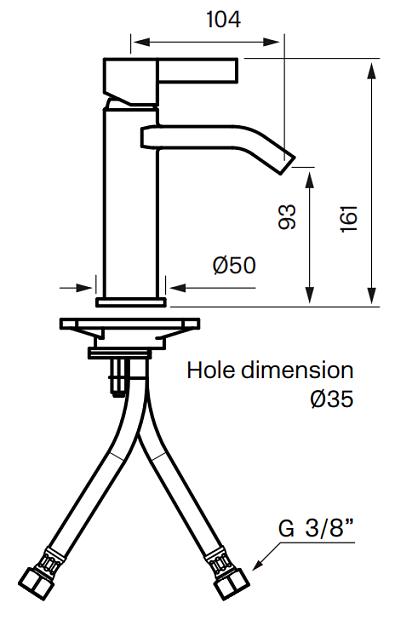 ARM071 servantbatteri med stilrent klassisk formuttrykk. Uten oppløftventil, kombiner med pop-up 74400.