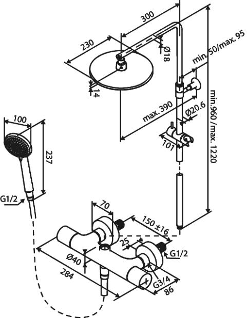 - Størrelse hånddusj: 100 mm