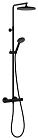 Core takdusj er en komplett takdusj med stang med fleksibel justering på høyden, håndusj med tre innstillinger, takdusjhode på 230mm og 1500mm sort matt glatt slange. Termostatkran med skoldesperre og grep med knapp som gjør det enkelt å endre temperatur og vannmengde.