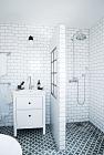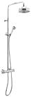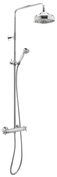 Nostalgisk takdusj med 200mm dusjhode. Hånddusj med porselensdetaljer. Justerbar høyde på stang 1020-1250mm. Eco-save og skoldesperre på termostatkran. Metallslange med anti-twist.
