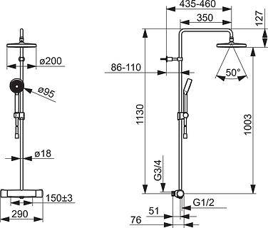 Takdusjen leveres med termostat. Ø200 mm takdusj og Ø95 mm hånddusj. Dusjkranen er utstyrt med skoldesperre 38°C på temperaturratt samt mengderegulering med EcoFlow. Tak- og hånddusj er utstyrt med silikondyser, som er enkle å holde rene på grunn av anti-kalk teknologi.