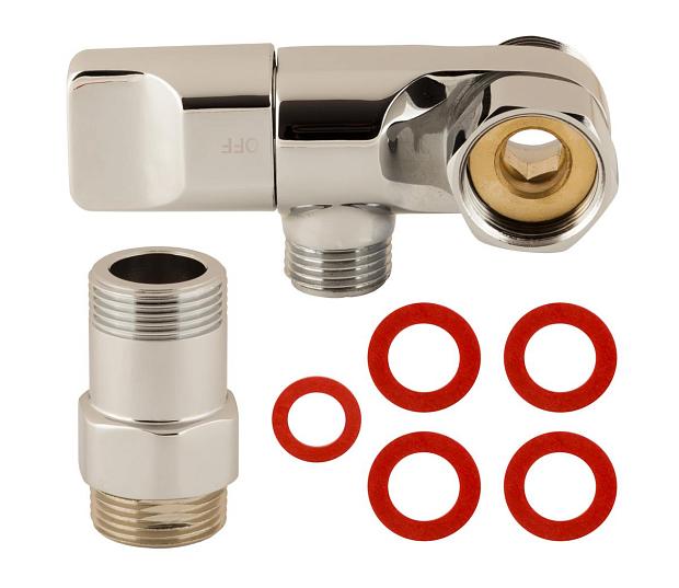 Vaskemaskinkran med mellomstykke for å ta ut vann til vaskemaskin fra uttak til eksisterende dusj- og badekararmatur.