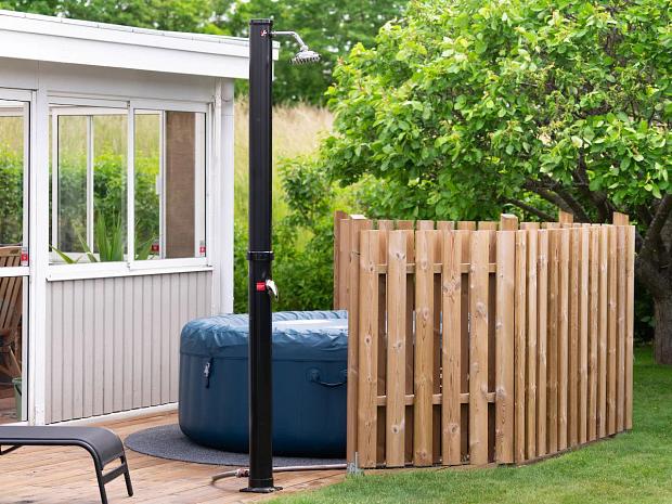 Få mest mulig ut av sommerens uteliv ved å dusje i hagen! Med en soloppvarmet utedusjkan du nyte den avkjølende følelsen, samtidig som du blir kvitt både svette og sand fra en aktiv utedag. Vannbeholderen rommer 35 liter vann som varmes opp av solens stråler. Blanderen lar deg temperere vannet.