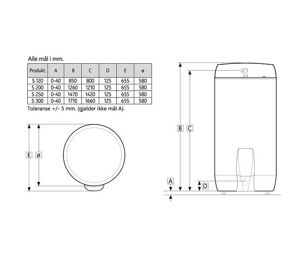 - Kapasitet varmtvann 40 °C: 355 L