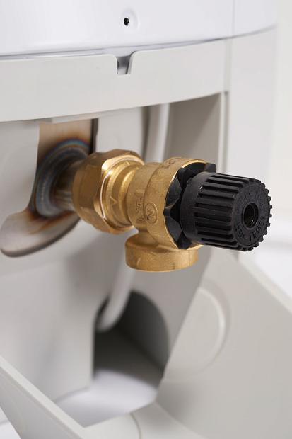 - Sikkerhetsventil - SVK 9 bar, 1/2, fabrikkmontert bak lokk nede.